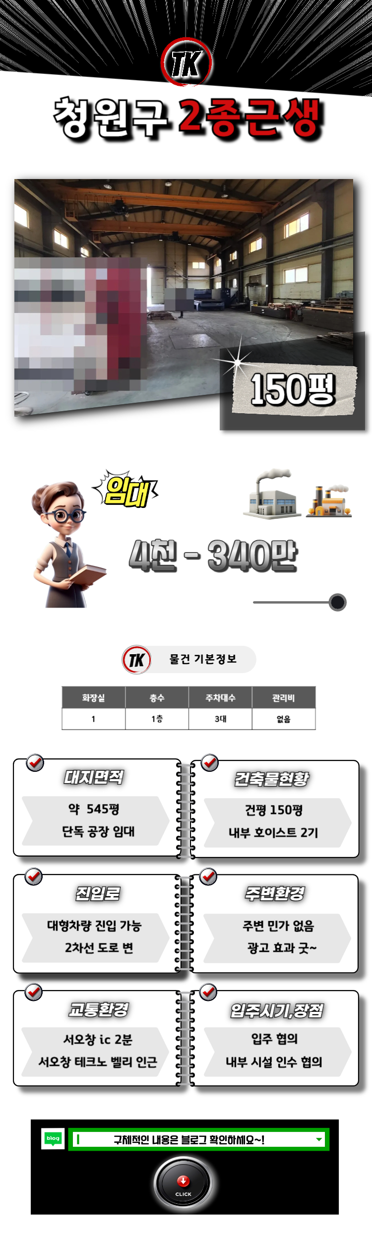 공장등록,월세저렴,서오창 IC, 호이스트 ,2차선도로변 ,고전력