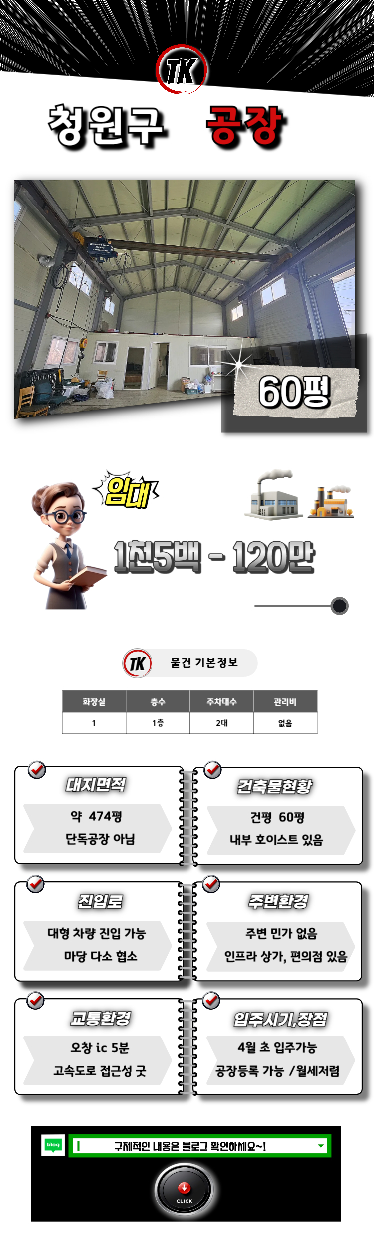월세저렴,호이스트 ,내부사무실,공장등록,구축공장,오창ic